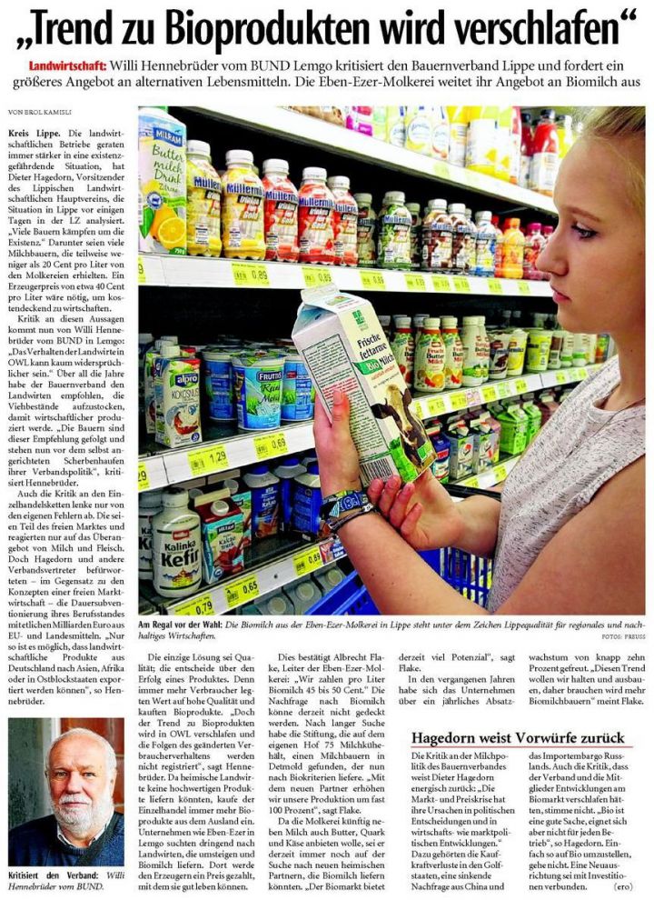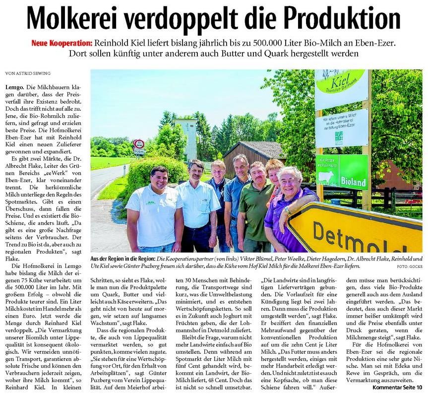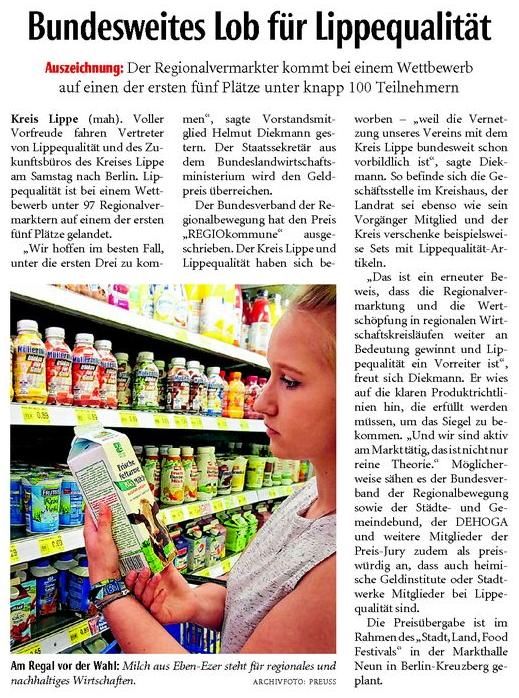 Lippequalität ist im Kreis längst ein Begriff. Um einzelne Waren noch bekannter zu machen kürt der Verein nun zum zweiten Mal zwei "Produkte des Jahres". Dieses Jahr sind das die Lippische Milch der Hofmolkerei Eben-Ezer und die lufttrockene li ...