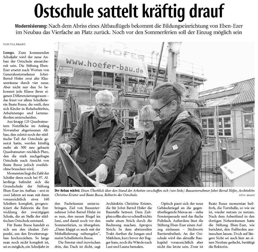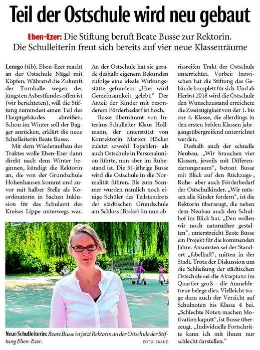 Sie dürfte eine der kleinsten ihrer Art weit und breit sein. Die „Ostschule –Grundschule der Stiftung Eben-Ezer“ startet kommenden Mittwoch mit 4 Le ...
