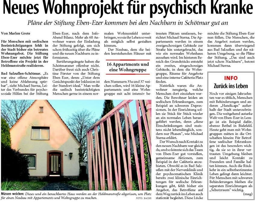 Die Stiftung Eben-Ezer hat Pläne in Schötmar. Diese stellte sie jetzt an einem Infoabend Nachbarn und Interessierten im Gemeindehaus der evangelisch-reformierten Kilianskirche in Schöt ...