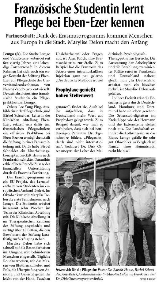 Französische Studentin lernt Pflege bei Eben-Ezer kennen