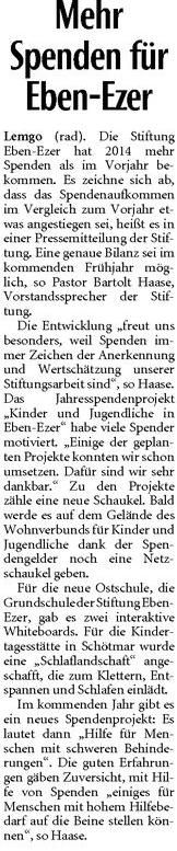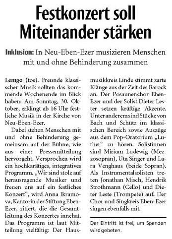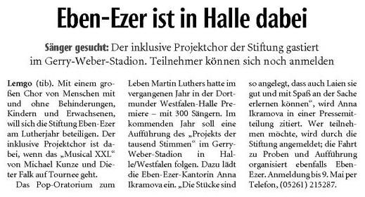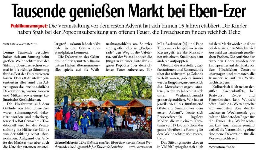 Aus Gründen, die sich aus dem Urheberrecht ergeben, kann ein elektronischer Pressespiegel hier leider nicht mehr zur Verfügung gestellt werden. Gerne können wir Ihnen aber einzelne Artikel aus unserem Pressearchiv zur Verfügung stellen. Melden Sie sich gerne bei ingelore.moeller@eben-ezer.de