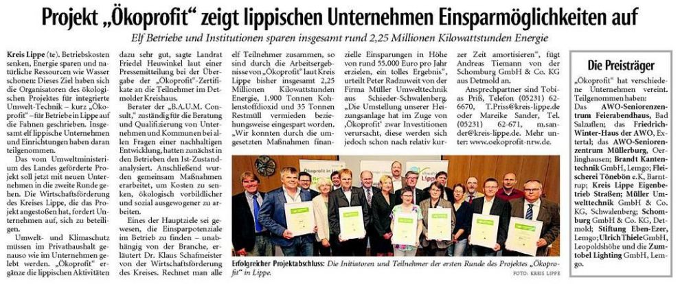Projekt "Ökoprofit" zeigt lippischen Unternehmen Einsparmöglichkeiten auf