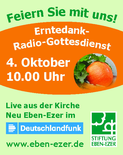 Erntedank-Gottesdienst im Deutschlandfunk aus der Kirche Neu Eben-Ezer in Lemgo Erntedank ist ein Fest, das in der Stiftung mit einem besonders festlichen Gottesdienst begangen wird. Der A ...