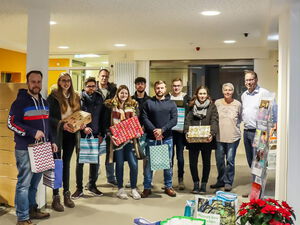 Studierende der Studiengänge BWL und Logistik der Technischen Hochschule OWL mit ihren Dozenten Prof. Dr. Korbinian von Blanckenburg und Dr. Florian Hobbeling brachten am Freitag vor dem vierten Advent liebevoll gepackte Päckchen und Pakete. Ang ...