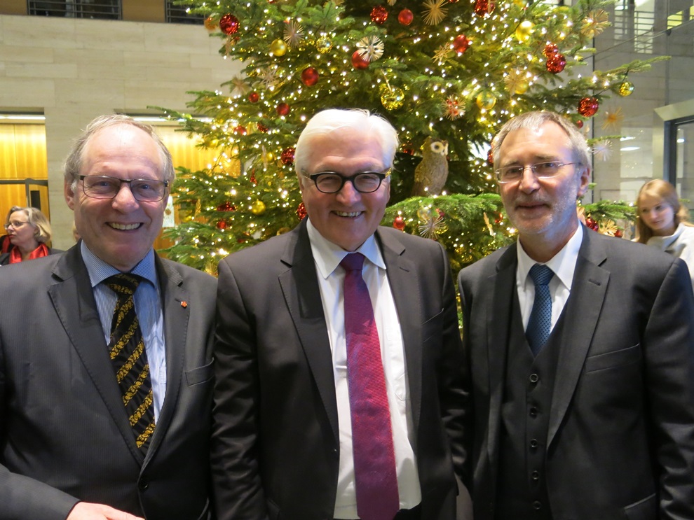 Eben-Ezer reist mit lippischer Weihnachtstannen-Delegation nach Berlin zum Außenminister und Präsidenten in spe Im Lichthof des Außenministeriums steht die sieben Meter hohe Tanne aus Blomberg. Am 30.November um 17:00 Uhr übergab Initiator Wol ...