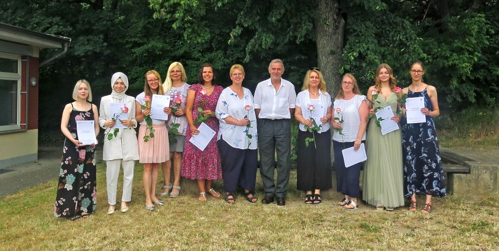 Aufbruch in eine aussichtsreiche Zukunft Sie haben es geschafft – nach zweijähriger Ausbildung haben zehn Heilpädagoginnen und 23 Sozialassistentinnen und -assistenten mit Schwerpun ...