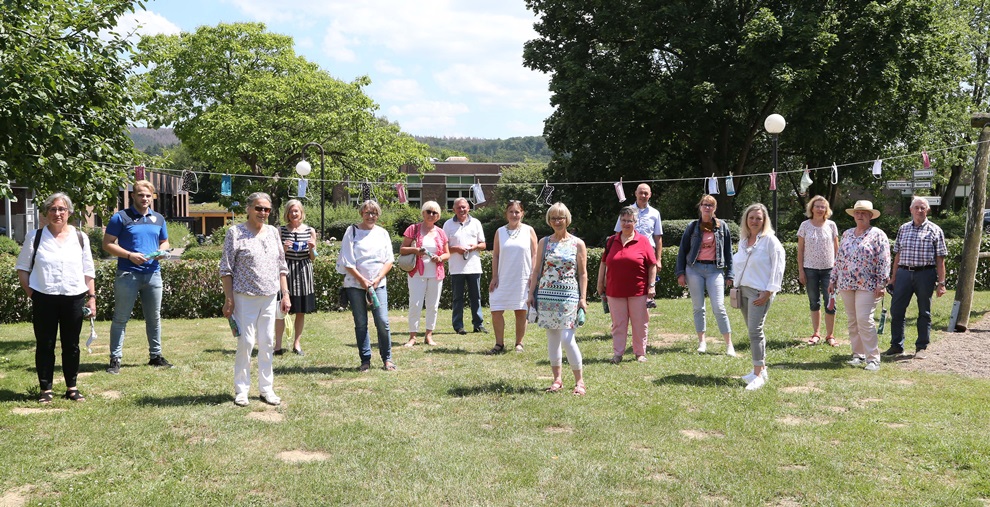 „Sie haben einen wichtigen Beitrag geleistet und uns wirksam unterstützt, als Sie unsere Bitte, Masken für die Menschen in Eben-Ezer zu nähen, in die Tat umgesetzt haben. Dafür danken wir Ihnen sehr herzlich“, sagte Pastor Dr. Bartolt Haase zur Begrüßung der ehrenamtlichen Näherinnen und Maskenspender*innen. Eben-Ezer hatte am Freitag vor den Sommerferien zu einem Dankeschön-Treffen auf der Wiese vor der Verwaltung von Eben-Ezer eingeladen. Auch Mitarbeiterinnen aus der Nähstube und der Textilabteilung von eeWerk waren dabei. Bei einem kühlen Getränk wurde über geeignete Stoffe, bevorzugte Designs, Waschanleitungen und Haltbarkeit der Masken gefachsimpelt. Natürlich war auch die aktuelle Situation in Gütersloh Thema und wie wichtig die Beachtung der Hygiene- und Abstandsregeln ist.