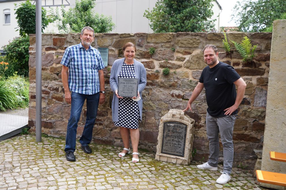 Bis Bernd Quintern bei Eben-Ezer anrief. Für die Firma Stocksmeier fuhr er den LKW, mit dem der frei gelegte Schutt abtransportiert wurde. Dabei waren ihm ein Grabstein und eine Tafel aufgefallen, die er zu schade für die Steinmühle fand. Stein und Tafel hatten auf das Grab des Ehepaares Wilhelmine und Fritz Meierotto gehört, verstorben 1910 bzw. 1918. Wilhelmine Meierotto war 64 Jahre alt geworden, Fritz Meierotto 74.