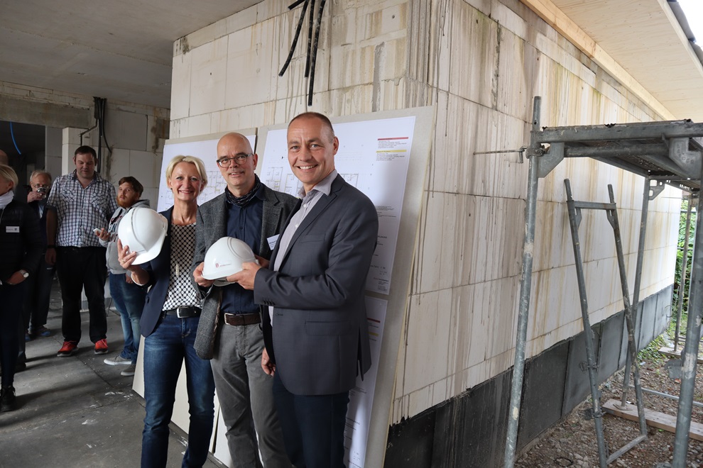 Bauleiter Claudius Wedepohl und Planungsleiterin Kirstin Siwiora vom Architekturbüro Brand in Lemgo führten Interessierte durch das Haus und erläuterten anhand von Plänen das künftige Erscheinungsbild. Die stellvertretende Bürgermeisterin Bad Salzuflens, Beate Hoffmann-Hildebrandt, überbrachte die Grüße der Stadt. Zu den Gästen zählte auch Alexander Spernau, Geschäftsführer von LNK.