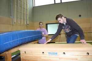 Vor kurzem fand wieder das Bewegungsfest für schwerstbehinderte Schüler und Schülerinnen in der Sporthalle von Neu Eben-Ezer statt. Erstmals konnten die Jugendlichen bei dem alle zwei Jahre im Rahmen des Landessportfestes der Förderschulen mit dem Schwerpunkt "Geistige Entwicklung" statt findenden Event die tollen Möglichkeiten und die Ausstattung der neuen Zweifachsporthalle nutzen. Das Bewegungsfest ist für die Anforderungen und Bedürfnisse von schwerstbehinderten Kindern konzipiert. Balancieren, Schaukeln, Hüpfen oder einfach auf dem Air-Tramp, einem riesigen aufblasbaren Kissen, zu entspannen gehörten mit zum Programm. Außerdem konnte der große Snoezelenbereich der Stiftung im Haus Hohensonne genutzt werden. 42 Schüler und Schülerinnen der Topehlen-Schule im Alter von 6 bis 24 Jahren absolvierten von morgens bis mittags die vielen abwechslungsreichen Übungen und hatten großen Spaß dabei, diesen besonderen Schultag zusammen mit ihren Lehrern und weiteren Helfern zu verbringen.