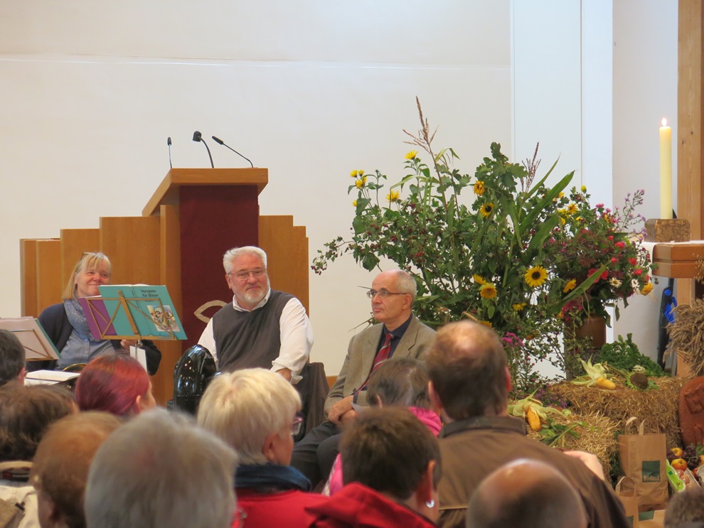Vor 25 Jahren feierte Eben-Ezer die Fertigstellung des Kirchlichen Zentrums in der Mitte Neu Eben-Ezers. Mit dem Erntedankgottesdienst zusammen beging Eben-Ezer nun mit vielen Gästen das Jubiläum. Die Kirche war voll besetzt, als die Kinder aus der Nachbarschaft mit Erntegaben in den Gottesdienst einzogen. Sie wurden begleitet vom Posaunenchor der Stiftung. Der üppig geschmückte Altar und die musikalischen Klänge gaben dem Gottesdienst seinen besonderen festlichen Rahmen. Ein inklusiver Projektchor, ein kleines Orchester und die Solosängerin Miriam Ludewig sowie Solosänger Michael Hoyer brachten die Kantate von J.S Bach „Bringet dem Herrn Ehre seines Namens“ unter Leitung von Anna Ikramova zur Aufführung. Sie begeisterten die Zuhörerinnen und Zuhörer.