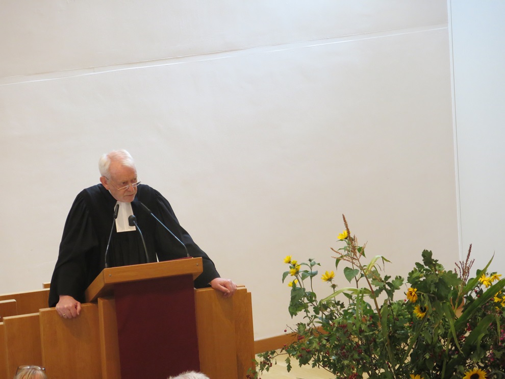 Die Predigt des Festgottesdienstes hielt Pastor i.R. Hermann Adam. Er wurde vor 25 Jahren in der eben eröffneten Kirche in sein Amt als Theologischer Direktor der Stiftung Eben-Ezer eingeführt. Ein Amt, das er bis 2013 innehatte. Viele Gottesdienste, aber auch viele gesellschaftlichen Anlässe wie die Feierlichkeiten zum 150 jährigen Stiftungsjubiläum und zahlreiche Diskussionsrunden mit Politikern, u.a. mit dem heutigen Bundespräsidenten Frank-Walter Steinmeier, haben im Kirchlichen Zentrum stattgefunden. Christine Schulze nannte die Kirche „unsere gute Stube“, wo sie sich gern aufhalte.