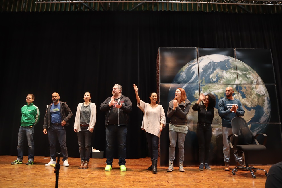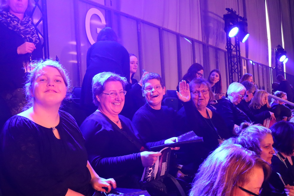 50 Sänger*innen des Eben-Ezer Projektchors, davon rund die Hälfte Klient*innen der Stiftung standen (und das ist durchaus wörtlich gemeint) die Anstrengungen von langen Proben und Fahrten zu denselben gut gelaunt durch. Die Proben in Eben-Ezer hatte Stiftungskantorin Anna Ikramova geleitet, die ebenfalls mit ihren Kindern mitsang. Am Aufführungstag, am 10. Februar selbst, startete der Bus aus Eben-Ezer um 9 Uhr nach Essen, ab 13 Uhr fand das Einsingen mit den Chorleitern Stefan Glaser, Christoph Spengler und Miriam Schäfer statt, gefolgt von choreographischen Anweisungen wie Schunkeln (die geraden Reihen nach rechts, die ungerade nach links), Step Touch, Welle und An-den-Händen-Halten durch Regisseur Andreas Gergen. Um 14 Uhr begann die Generalprobe und um 18 Uhr die Aufführung, die das Publikum begeistert verfolgte.