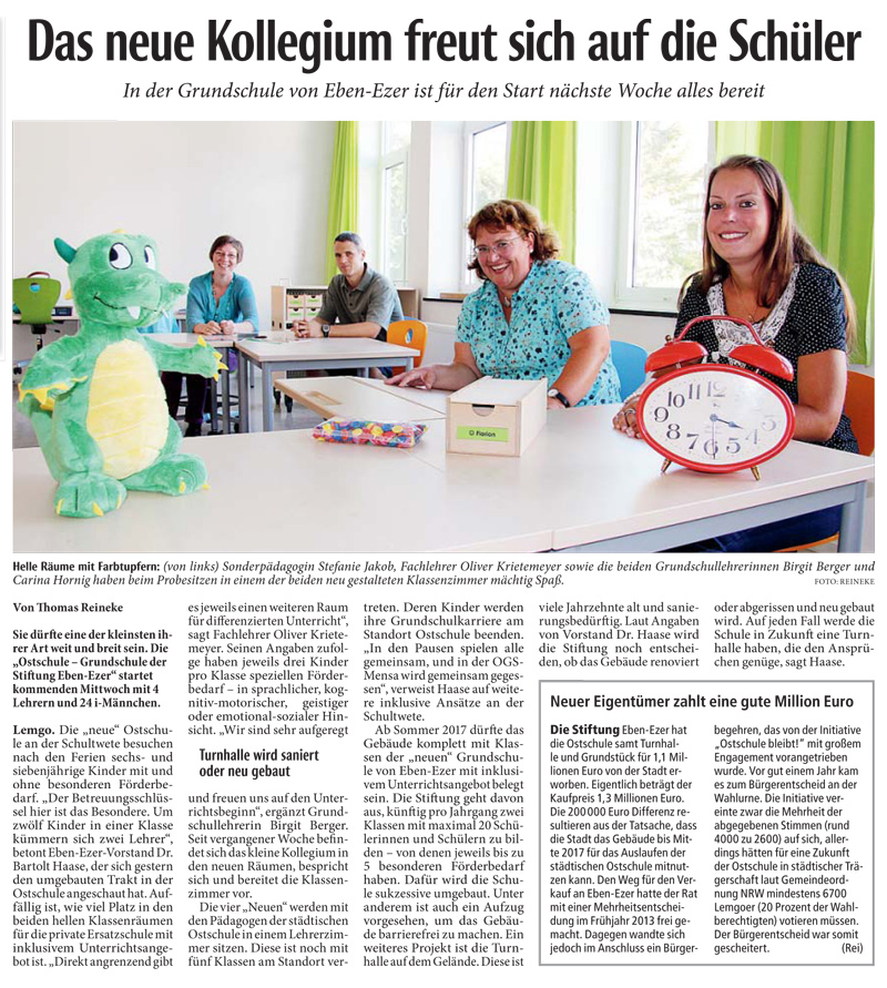 Sie dürfte eine der kleinsten ihrer Art weit und breit sein. Die „Ostschule –Grundschule der Stiftung Eben-Ezer“ startet kommenden Mittwoch mit 4 Lehrern und 24 i-Männchen.
