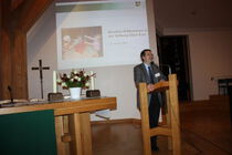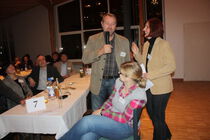 Fast alle der neuen Mitarbeitenden hatten die Teilnahme zugesagt, mit den ausgewählten Mitarbeitern der Stiftung, die an Schnittstellen sitzen und daher ebenfalls eingeladen wurden, und den Vertretern der beteiligten Kirchengemeinden kam so eine Runde von über 200 Personen zusammen. Es erwartete sie ein abwechslungsreiches Programm mit Begrüßungsansprache des Vorstands, Präsentationen über die aktuellen Projekte "Ideenwerkstatt" und "Das Haus der kleinen Forscher" der Kindertagesstätten und die Vorstellung der leitenden Mitarbeiter der Stiftung. Danach ging man über zum interaktiven Teil der Veranstaltung, die musikalisch von Jörg Riemann am Klavier begleitet wurde. Beim gemeinsamen Abendessen mischten sich Mitarbeiter der Stiftung und der Kindertageseinrichtungen in lockerer Sitzordnung an den Tischen und lernten sich und ihre Arbeitsfelder beim zwanglosen Miteinander näher kennen.