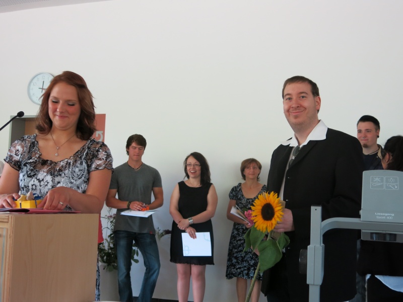 Topehlen-Schulrektor Klaus Hollmann stellte alle Absolventen einzeln mit einem augenzwinkernden Profil vor, das die Klassenlehrer vorbereitet hatten. Christoph Steinke dankte mit einer Rede, in der er keinen seiner Lehrer vergaß, dafür "dass Sie mich so gut gefördert haben". Der junge Mann lebt bereits in seiner eigenen Wohnung und wird ambulant betreut. Er wechselt nach der Schulentlassung mit vielen Mitabsolventen in den Berufsbildungsbereich der Werkstatt für behinderte Menschen. Für die meisten steht auch ihr künftiges Zuhause im Wohnbereich für Erwachsene der Stiftung bereits fest. Vorfreude auf das Kommende aber auch Abschiedswehmut war beim Lehrerkollegium ebenso wie den Schülerinnen und Schülern zu merken.
