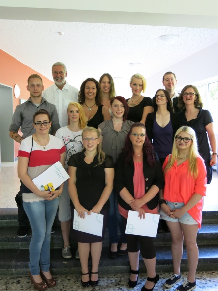 Besonders geehrt wurden Heilerziehungspfleger Matthias Peters und Heilerziehungspflegerin Larissa Zerr sowie Marcel Arff und Ida Brand vom Ausbildungsgang Heilerziehungshilfe für ihre 1 vor dem Komma beim Notendurchschnitt. Marcel Arff und Ida Brand werden sich weiter zur Heilerziehungspflegerin bzw. zum Heilerziehungspfleger qualifizieren. Berufskollegleiter Klaus R. Berger, sein Stellvertreter Reinhold Meyring sowie die weitere Mitglieder des Kollegiums Dr. Martin Humburg, Bianca Knappe und Dagmar Brand freuen sich mit ihnen.