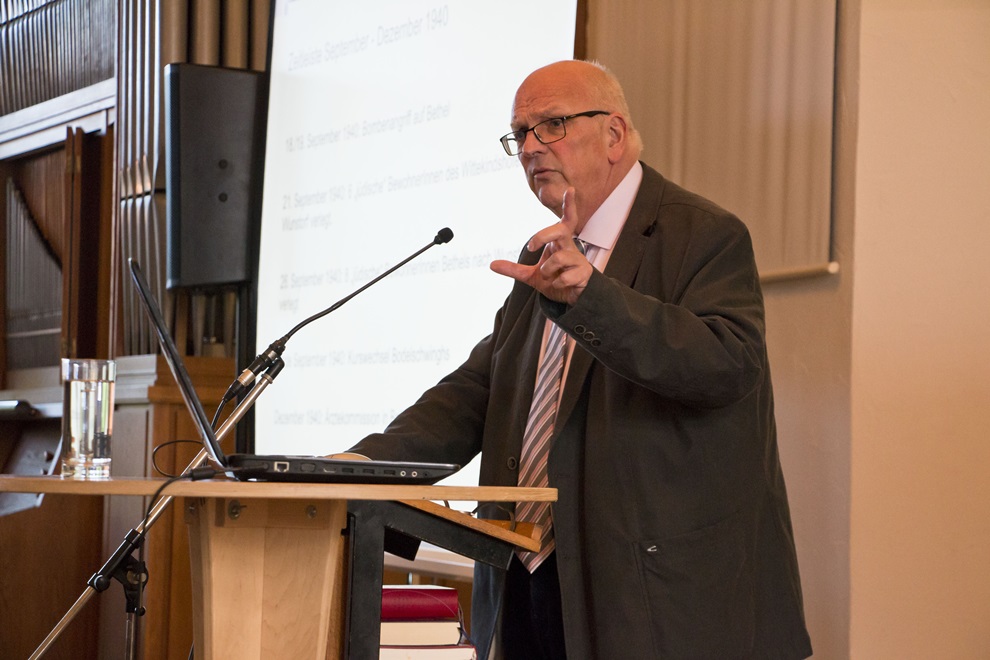 Die Fachveranstaltung am 17. November in der Kapelle von Alt Eben-Ezer bildet ein weiteres Element der historischen Aufarbeitung und stellt die Stiftungsgeschichte in Zusammenhang mit anderen Einrichtungen in Westfalen und Lippe. In der Begrüßung zur Tagung hob Vorstand Pastor Dr. Bartolt Haase den Wert gemeinsam getragener Verantwortung hervor: „Gemeinsam Verantwortung zu übernehmen, davon gibt auch Ausdruck, dass wir als Stiftung Eben-Ezer nicht allein den heutigen Tag, den Gedenkgottesdienst am Sonntag und vor allem die Errichtung der Gedenkstele tragen. Die historische Aufarbeitung und auch die Gestaltung eines angemessenen Gedenkens sind nicht allein Thema für Eben-Ezer. Die Dimensionen reichen deutlich über unsere Stiftung hinaus.“