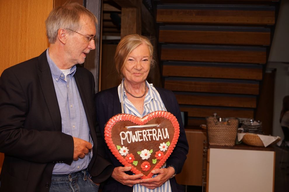 Backen, Managen, Anleiten, Veranstaltungen und Feste organisieren, neue Geschäftsfelder erschließen, und sowohl im gesellschaftlichen Leben Lemgos als auch bei gastronomisch übergreifenden Events mitgestalten: Ina Meise-Laukamp hat es unter einen Hut bekommen. „Du hast einen Einsatz bewiesen, der sich an Anforderungen und Visionen orientierte und nicht an einem Acht-Stundentag. Du hast deinen Arbeitsvertrag mehr als erfüllt“, sagte Udo Zippel. Neun Jahre lang leitete Ina Meise-Laukamp das Café dann wechselte sie als Projektmanagerin mit dem Schwerpunkt Gastronomie den Arbeitsbereich und sorgte unter anderem als Protokollchefin dafür, dass der Besuch des Bundespräsidenten Frank-Walter Steinmeier im Herbst 2019 reibungslos ablief. Nach einer Phase der – coronabedingten -Kurzarbeit war ihre letzte berufliche Aufgabe, Flüchtlinge aus der Ukraine beim Ankommen in der deutschen Bürokratie zu unterstützen. Familien mit behinderten Familienmitgliedern haben in Häusern und Apartments von Eben-Ezer ein neues Zuhause gefunden und Ina Meise-Laukamp hilft ihnen bei der Organisation des Alltags und der Überwindung von bürokratischen Hürden. Das man eine solch trockene Aufgabe auch mit viel Herz managen kann, hat sie dabei bewiesen. Die Kontakte werden sicher nicht abreißen. Zur Verabschiedung von Ina Meise-Laukamp waren zahlreiche Kolleginnen und Kollegen, Familie und Freunde gekommen. Es war eine fröhliche Feier in lockerer Runde.