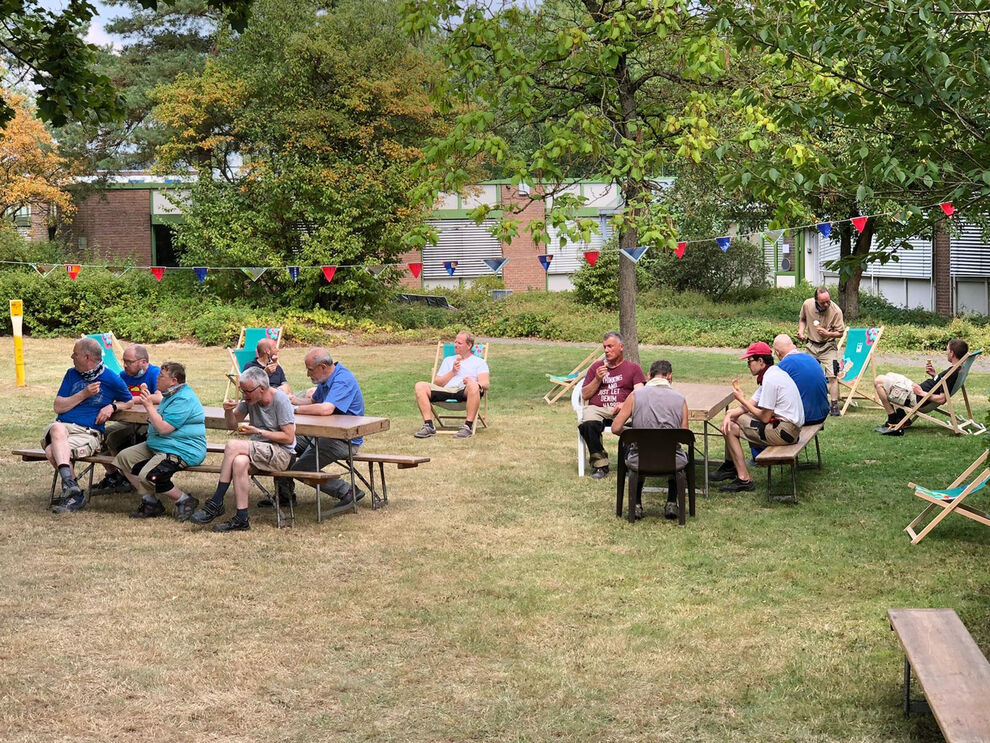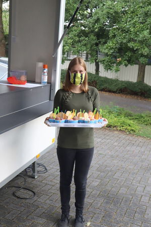 Natürlich musste die Eis-Tour logistisch gut vorbereitet werden. Die Gruppen mussten sich anmelden, damit es kein Gedränge gibt und am Eiswagen keine Menschen zusammen kommen, die sonst nicht zusammen leben und arbeiten. Diese Vermeidung ist ein Teil des Stiftungskonzepts gegen Corona. Manche Kolleg*innen holten das Eis lieber auf dem Tablett in ihre jeweiligen Gruppen und Arbeitsbereiche. Etliche aber nutzten die Aktion für eine Auszeit, etwa auf der Wiese vor eeWerk. Hier machte der Eiswagen an zwei Tagen Station. Eine kleine Lounge mit Musik lud zum Verweilen ein. Man konnte Zeiten buchen und den Abstand zu anderen Gruppen gut einhalten. Am Spiegelberg und in den anderen Einrichtungen ließ man es sich gemeinsam im schönen Garten gutgehen oder zelebrierte seinen Eisbecher auch ganz individuell.