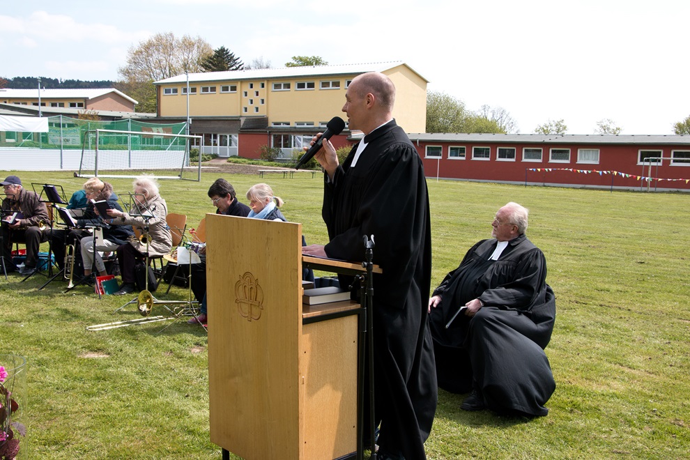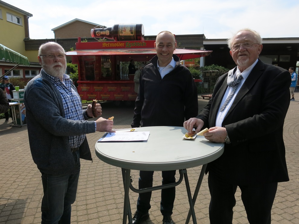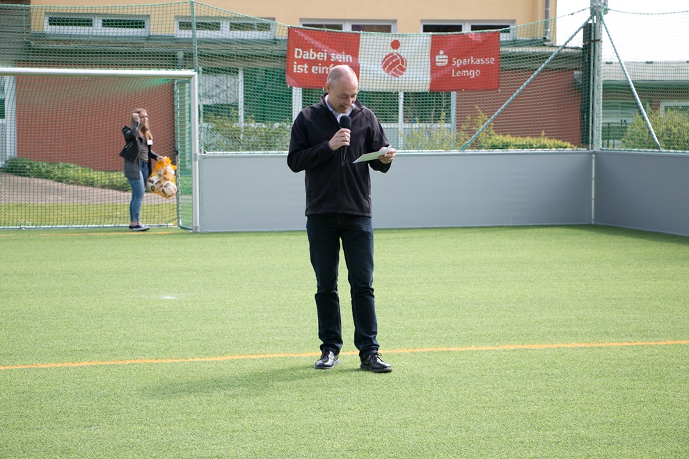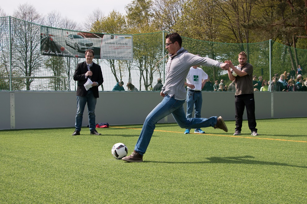 Pastor Dr. Haase dankte allen Spenderinnen und Spendern, die die Anschaffung des des Soccerfields möglich gemacht haben und namentlich auch den Unternehmen, die den Eröffnungstag mit dem Spiel der Traditionself finanziell unterstützt haben: Getränke Klocke, Bürobedarf Korf und Bürobedarf Betzendahl und Firma Horst Scheitzke sowie die Firma Raumausstattung Tasche. Zum Teil waren die Sponsoren auch persönlich vertreten.