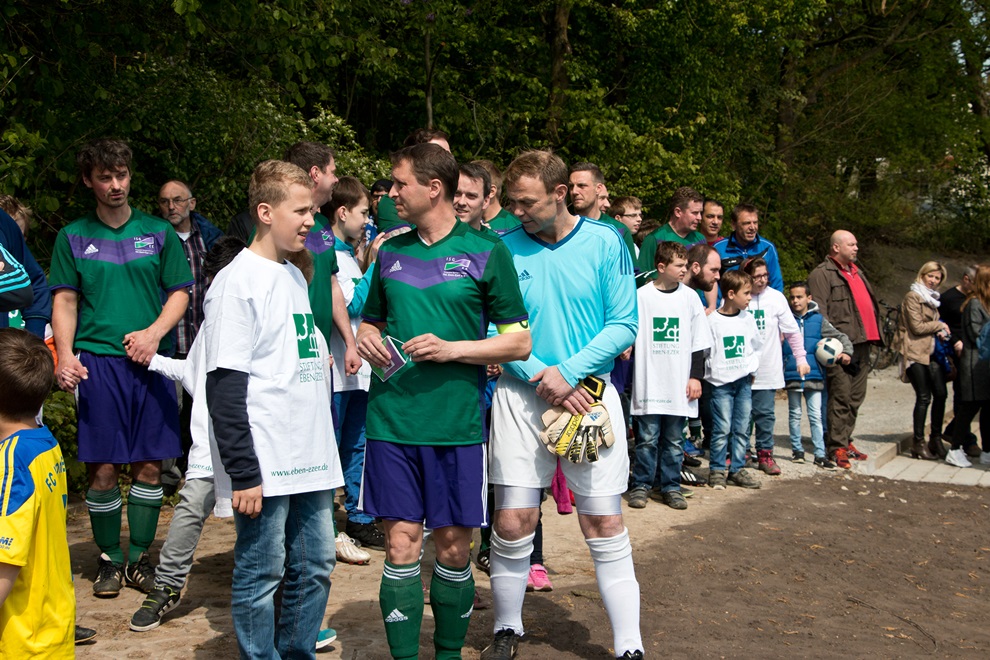 Bei strahlendem Sonnenschein spielte die Traditionself von Schalke 04 am 30. April gegen das Eben-Ezer-Nachbarschaftsteam. Mit diesem sportlichen Knaller beging Eben-Ezer die Eröffnung des neuen Soccerfields am Sportplatz am Berufskolleg. FuPaLu ist der neue Name, der bei einem Wettbewerb aus 28 Vorschlägen ausgewählt wurde. FuPaLu steht für Fußball Park Luherheide. Die rund 300 Zuschauerinnen und Zuschauer sahen ein packendes Spiel von acht Schalkern, darunter die Fußballegenden Klaus Fischer, Matthias Herget, Olaf Thon und Klaus Fichtel. Sportlicher Gegner waren acht Fußballer aus den Nachbarschaftsvereinen Eben-Ezers Lüerdissen, Entrup, Matorf und dem TV Lemgo. Ganz leicht machten es die Lemgoer den Schalkern nicht, es stand unentschieden, bis die Gelsenkirchner in der zweiten Halbzeit sicher in Führung gingen und nach Energie geladenen Zweikämpfen die Partie mit 4:2 für sich entschieden. Weltmeister Olaf Thon war mit am Platz, verletzungsbedingt spielte er nicht mit. Er war von Autogrammjägern belagert und ein überaus begehrtes Foto-Modell.