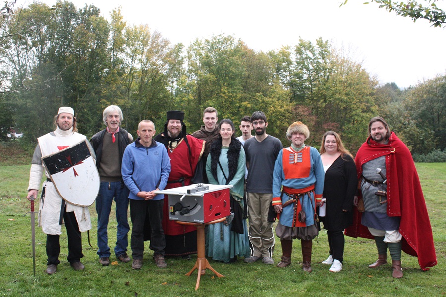 Stilechte Möble für ein zünftiges Mittelalterlager hat die Gruppe Heiden-Spektakel unter der Regie von „Meister Bruno“ Rischmüller-Affeldt in der Werkstatt Luhe an fünf Wochenenden gebaut. Ein Richtertisch, Sitzgelegenheiten, Essplätze - nur mit Holzkeilen zusammengefügt - entstanden unter den fleißigen Händen des Werkstatt-Mitarbeiters der Stiftung und seiner Helfer. Einen ganzen Möbelwagen voll konnten die Mittelalterfans am Ende des Workshops mit nach Hause nehmen. Zum Dank dafür überreichten sie vor kurzem der Werkstatt der Stiftung eine neue Tischkreissäge, die hier gut gebraucht werden kann. „Es war eine tolle Aktion, die allen sehr viel Spaß gemacht hat. Besonders schön finde ich, dass zwei der drei Beschäftigten, die mitgemacht haben, jetzt Mitglied von Heiden-Spektakel werden wollen“, so Bruno Rischmüller-Affeldt. „Die Möbel werden auf vielen verschiedenen Mittelalter-Märkten zum Einsatz kommen, denn wir bieten unserem Publikum immer auch ein spannendes Programm, so zeigen wir zum Beispiel eine authentische mittelalterliche Gerichtsverhandlung und dafür brauchen wir natürlich einen Richtertisch“, so Kai-Jörn Rosin, der als