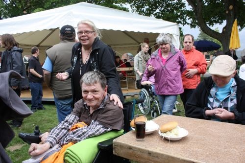 Dieses Jubiläum wurde ausgiebig gefeiert: Mitarbeitende und Beschäftigte verwandelten den Speisesaal, die Pausenhalle und die Außenfläche in eine große Party- und Feierfläche. "Heute wird nicht gearbeitet, heute wird gefeiert!", lud der Leiter der Werkstatt Markus Toepffer am Nachmittag rund 700 Beschäftigte, zahlreiche Gäste und Mitarbeitende ein. Besonders stolz war Toepffer, ein frisch mit dem Slogan der Werkstatt "Vielfalt im Werk" beflocktes T-Shirt vorzustellen, das während der Feier verteilt wurde.