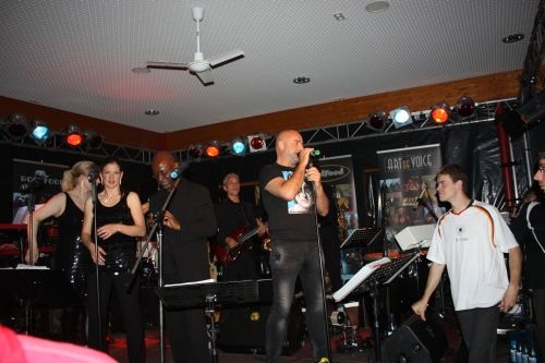 Aber das Highglight war der Auftritt der Bielefelder Liveband Soulfood am Abend, die eine fantastische Bühnshow boten und schnell dafür sorgten, dass die Tanzfläche in dem ausgeräumten Speisesaal sich füllte.