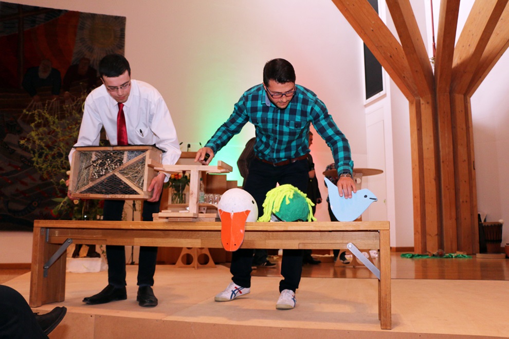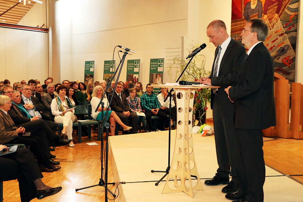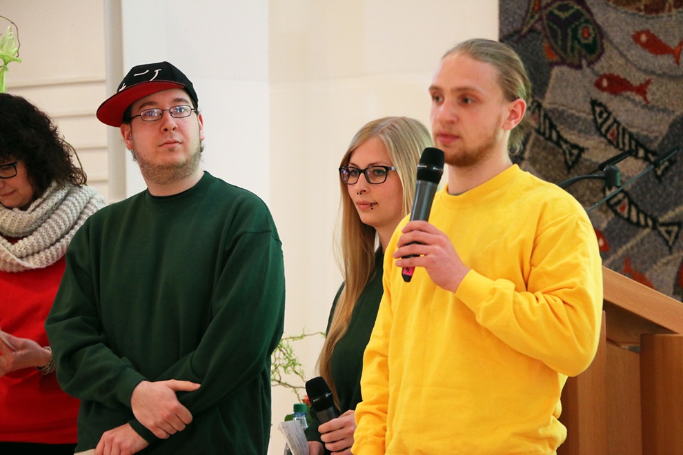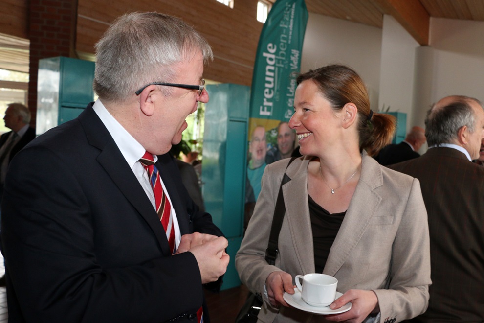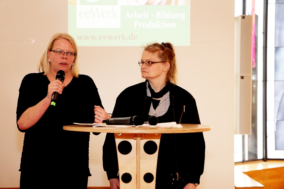Schüler der Topehlen-Schule hatten eine Präsentation vorbereitet, die zeigte, wie Kinder und Jugendliche in der Schule mit dem Förderschwerpunkt „Geistige Entwicklung“ lernen. Im Dialog stellten die Schüler Tim und Desiree den Schulalltag vor. Ein Team aus Beschäftigten und Mitarbeitenden von eeWerk, der Werkstatt der Stiftung mit Standorten in Lieme und Neu Eben-Ezer, zeigte stolz einen Trapperstuhl, den die Beschäftigten mit Unterstützung eines Mitarbeiters als Werkstück entwickelt und gebaut hatten und erzählten von dem PC-Kurs in einfacher Sprache, der von einer Mitarbeiterin von eeWerk angeboten wird und besonders die Frauenbeauftragte der Stiftung Annegret Bräunlein begeistert. Für kurze Unterbrechungen sorgten die zwischendurch eingespielten Imageclips, die Studenten der Hochschule Ostwestfalen-Lippe im Rahmen eines Studienprojektes erstellt haben. Professor Guido Falkemeier, Felix Boche und Janine Oelgeschläger berichteten, wie das Projekt zustande gekommen ist, welche Erfahrungen sie gemacht haben und wie sie die Zusammenarbeit mit den Menschen in Eben-Ezer empfunden haben. „Die Herzlichkeit und Wärme, mit der uns die Bewohner begegnet sind, war einmalig“, schwärmte Janine Oelgeschläger. Drei Imageclips zeigen die Lebensbereiche Freizeit, Arbeit und Wohnen. Zu sehen sind sie auch auf der Homepage der Stiftung unter www.eben-ezer.de. Das Spektrum des Berufskollegs mit den vier Säulen der Ausbildungen zum Heilerziehungshelfer, zum Heilerziehungspfleger, zum Heilpädagogen und dem Beruflichen Gymnasium für Erziehung und Soziales stellten Studierende und Absolventen des jeweiligen Bildungsganges vor.