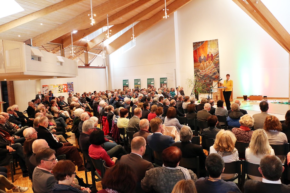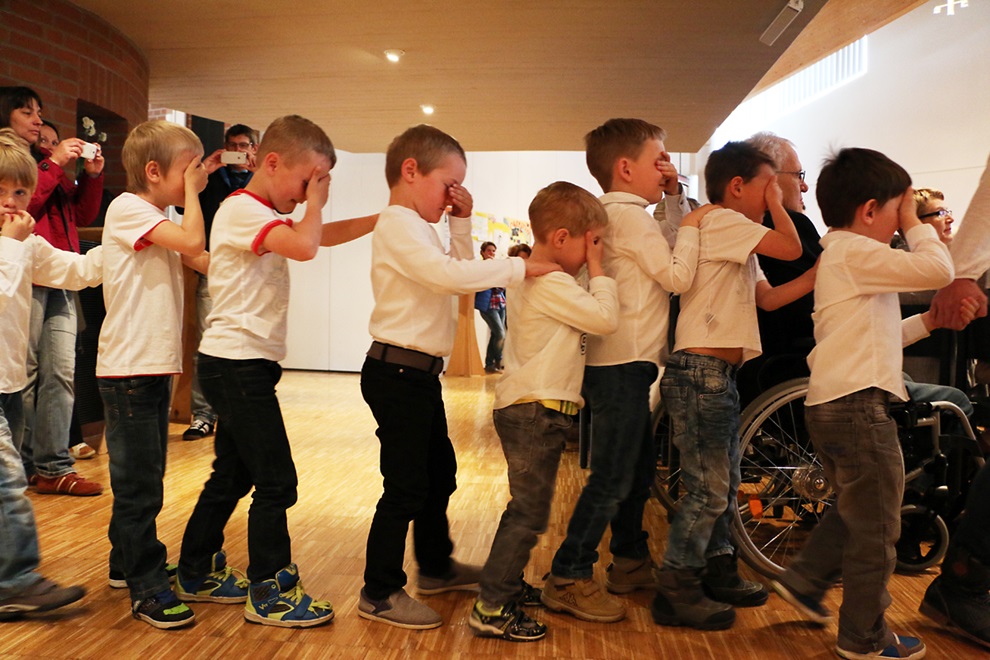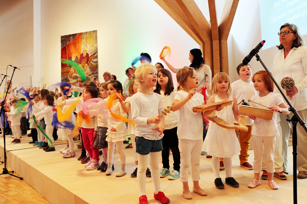 Jeder Referent erhielt von der Moderatorin Christine Förster eine Rose als Dank für seinen Beitrag. Der Jahresempfang der Stiftung Eben-Ezer am 17. April zum Thema Inklusion und Bildung mit rund 230 Gästen aus Kirche, Diakonie, Gesellschaft, Politik und Wirtschaft war sehr lebendig und abwechslungsreich gestaltet. „Inklusion ist auch eine Bildungsaufgabe für uns“, konstatierte Pastorin Dr. Johanna Will-Armstrong, Vorsitzende des Aufsichtsrates der Fachhochschule der Diakonie, in ihrem Grußwort. Beim Thema Inklusion gehe es vorrangig darum, die eigene Haltung auszuloten und Abwehrmechanismen zu überwinden, so will-Armstrong. Die Stiftung Eben-Ezer gehört seit letztem Jahr zu den Trägern der Fachhochschule in Bielefeld. In Lippe reicht das Spektrum des diakonischen Bildungsträgers von Bildungsangeboten in der Kita bis zur beruflichen Bildung im Berufskolleg oder bei eeWerk. „Wir erleben heute hier eine Bildungsrevue“, kündigte der Theologische Vorstand Pastor Dr. Bartolt Haase in seiner Begrüßung an. Zahlreiche Akteure stellten die Bereiche der Stiftung vor, in denen Bildung eine Rolle spielt. Den Anfang machten über 50 Kinder aus den zur Stiftung gehörenden Kitas Stemmen, Stiftstraße, Arche Noah, Regenbogen, Kälbertal und Himmelszelt, die eine musikalisch-tänzerische Interpretation des 23. Psalms „Der Herr ist mein Hirte“ aufführten, die sie mit der Stiftungs-Kantorin Anna Ikramova eingeübt hatten.