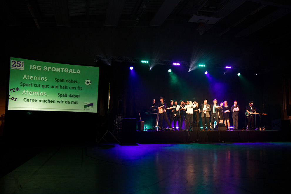 „Atemlos“ war das Stichwort für das neue Vereinslied, das sich die ISG selbst zum Geburtstag geschenkt hat. Darin werden die Anstrengungen besungen, die mit jedem Sport verbunden sind – aber vor allem auch der Lohn, den der Erfolg am Ende mit sich bringt und die Gemeinschaft, die sich gegenseitig trägt und hilft, auch wenn es mal schwer wird. Lebensfreude vermitteln und teilen, das hat sich die ISG auf ihre Fahnen geschrieben. Und die, so Dr. Reiner Austermann , war in der Gala deutlich spürbar.