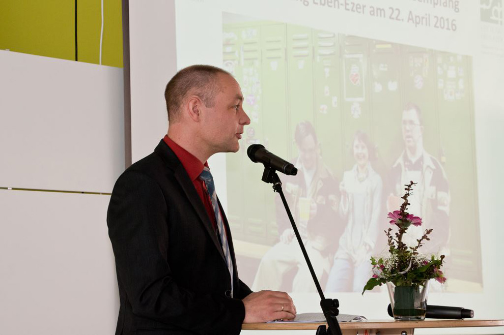 Über zweihundert Gäste aus Wirtschaft, Politik, Bankenwesen, Partner-einrichtungen, dem Kirchenumfeld und der Mitarbeiterschaft waren der Einladung mit zum Thema „Teilhabe durch Arbeit“ gefolgt. „Mit dem heutigen Jahresempfang möchten wir Ihnen einen Einblick in die vielfältige Arbeitswelt bei eeWerk geben“, begrüßte der Theologische Vorstand Dr. Bartolt Haase die Gäste. Der Landrat Dr. Axel Lehmann und der IHK-Vizepräsident Horst Selbach betonten in ihren Grußworten, dass sich die Bereitschaft der Unternehmen, Menschen mit Behinderungen in den ersten Arbeitsmarkt einzustellen, erhöhen müsse. „Viele dieser Menschen können schon mit kleinen Hilfen Großes leisten. Die Arbeit dieser Menschen wird gebraucht“, ist sich Landrat Lehmann sicher. Was Arbeit in Werkstätten für Beschäftigte bedeutet, verdeutlichte der Kaufmännische Vorstand Udo Zippel im Gespräch mit Melanie Lamek, die 1999 bei Eben-Ezer ins Arbeitsleben eintrat und seitdem in vielen verschiedenen Bereichen gearbeitet hat.