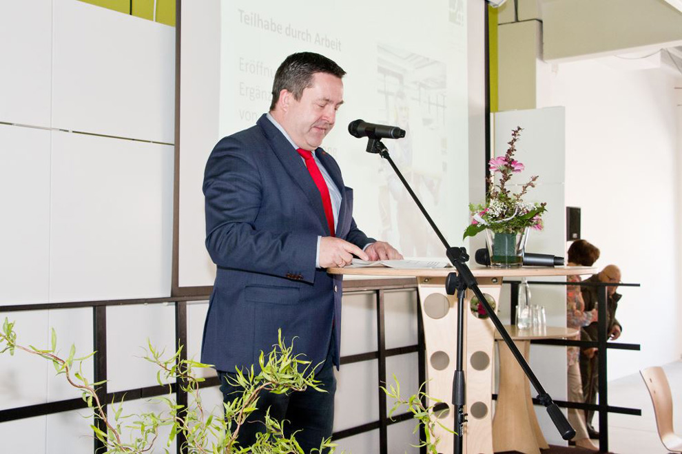 Eine große Nähe zum ersten Arbeitsmarkt haben auch die Jobs des Integrationsbetriebes Liemer Lilie. Der in Lieme ansässige Betrieb gehört zum Grünen Bereich der Stiftung, der von Dr. Albrecht Flake verantworte wird. Der Betrieb für Grünanlagenpflege bietet sozialversicherungspflichtige Teil- und Vollzeitarbeitsplätze an. „Darunter sind auch Arbeitsplätze mit individuell anpassbaren Leistungsanforderungen gemäß den individuellen spezifischen Möglichkeiten des Einzelnen. So wird schrittweise eine Annäherung an die Anforderungen des allgemeinen Arbeitsmarktes erreicht“, erläuterte Dr. Flake das Konzept der Liemer Lilie. Unabhängig von diesen Entwicklungen in Richtung regulärer Arbeitsmarkt wird es aber immer Arbeitsplätze in geschützten Werkstätten der Behindertenhilfe geben müssen. „Auch in der Zukunft werden Menschen diese Art von Unterstützung brauchen“, so Markus Toepffer, Leiter von eeWerk. Bei eeWerk beschäftigt sich seit September 2015 eine Projektgruppe zur Öffnung der Werkstatt mit der Aufgabe, auf der Höhe der Zeit zu bleiben, sich auf Veränderungen vorzubereiten und Vielfalt von Arbeit zu sichern. „Die Mitglieder der Gruppe sind heute alle hier. Sprechen Sie sie gerne an. Wir hätten gerne mehr Projekte wie das bei der Firma Essmann. Gerne unterstützen wir Sie bei der Vorbereitung und Umsetzung“, bot Toepffer den anwesenden Vertretern der Wirtschaft in Lippe herzlich an.