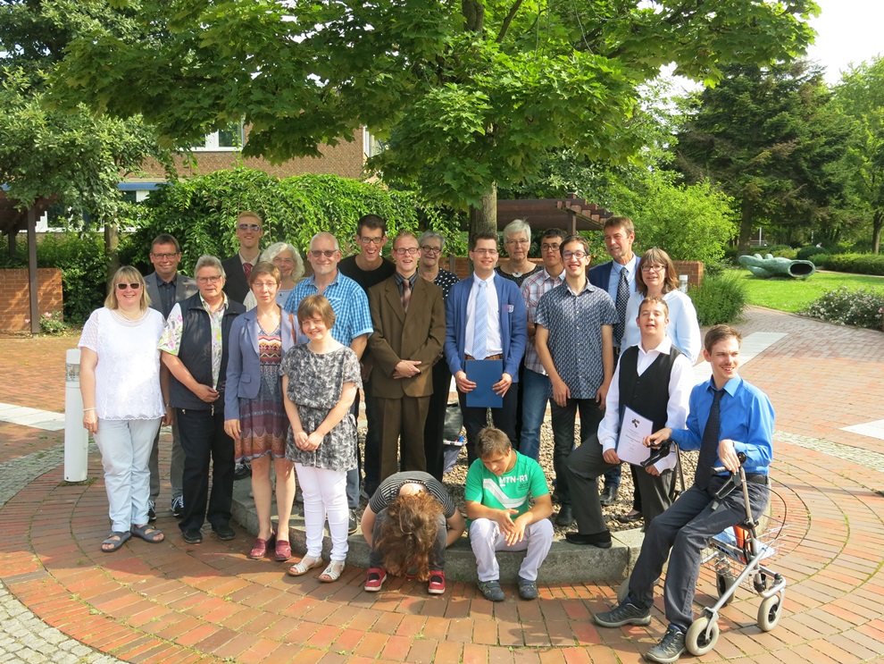 Viel Musik untermalte die Abschlussfeier der Förderschule der Stiftung Eben-Ezer. Nicht nur alle Schülerinnen, Schüler, Lehrerinnen und Lehrer waren da, sondern auch viele Gäste. Deshalb war die Feier in das größere Kirchliche Zentrum verlegt worden. Pastor Dr. Bartolt Haase erinnerte an das Luther Oratorium im Frühjahr, bei dem auch viele Schülerinnen und Schüler der Topehlen-Schule mitgemacht haben. Vor allem das Lied daraus „Wir sind Gottes Kinder, wo auch immer, wir sind nicht allein“ sei ein Versprechen, auf das sich jeder und jede das ganze Leben lang verlassen könne.