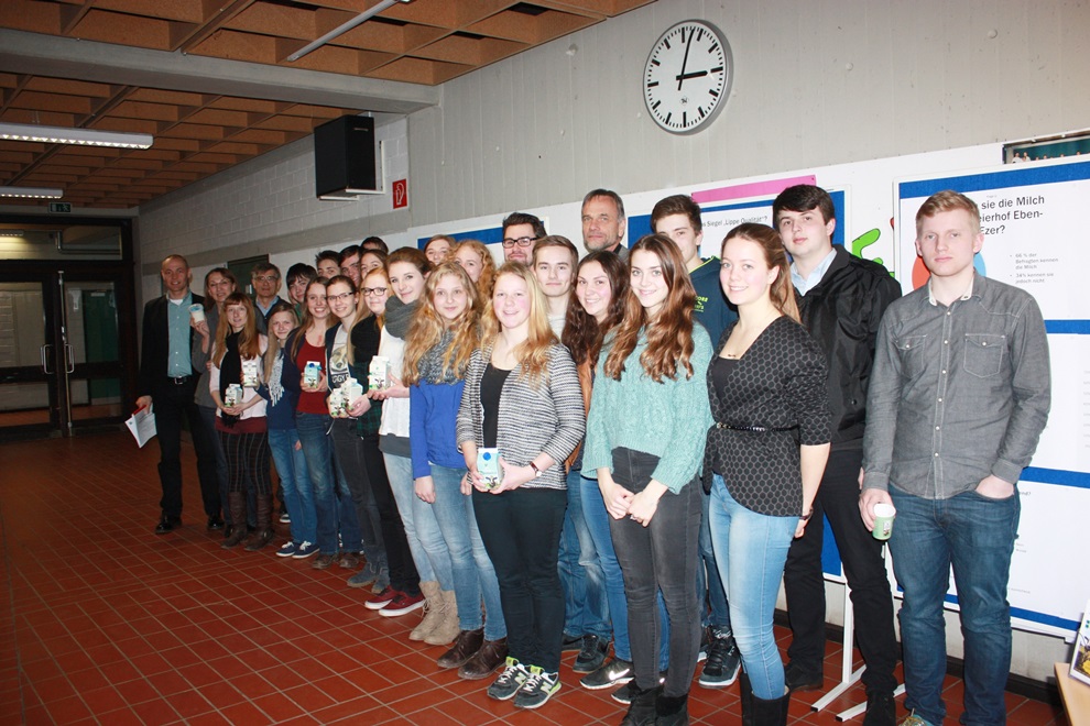 Rund 40 Abiturientinnen und Abiturienten des Engelbert-Kaempfer-Gymnasiums in Lemgo interviewten in einer repräsentativen Umfrage annährend 1200 Verbraucher zu regionalen Lebensmitteln im Kreis Lippe und zu den Molkereiprodukten der Stiftung Eben-Ezer.