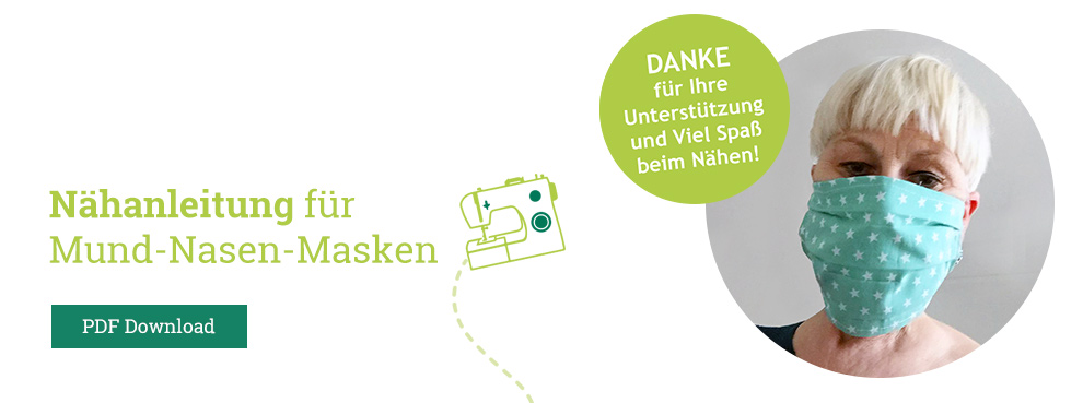 Wenn Sie Zeit, Lust und eine Nähmaschine haben: Nähen Sie Mund-Nasen-Masken für sich, Ihre Angehörigen, Mitarbeiter*innen und Klient*innen von Eben-Ezer. Eben-Ezer näht auch selbst, aber wir brauchen mehr: Zum Wechseln, als Ersatz und um jede/n mit zwei Masken zu versorgen. Diese Masken ersetzen nicht die professionellen, die im Umgang mit Erkrankten notwendig sind. Aber je mehr Menschen solche Masken tragen, desto besser für alle. Anleitungen gibt es unzählige im Internet. Die, nach der eeWerk näht, finden Sie hier. Für Rückfragen wenden Sie sich bitte an christine.foerster@eben-ezer.de oder 0175 22 18 790. Ihre Masken-Spende schicken Sie bitte an: