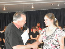 In seinen Abschiedsworten beschäftigte Schulleiter Klaus R. Berger sich mit dem Thema Vertrauen. Vertrauen in das Berufskolleg der Stiftung Eben-Ezer haben offensichtlich auch die Schülerinnen und Schüler. 35 von ihnen bleiben der Schule treu, sie werden im kommenden Schuljahr ihre Ausbildung am Berufskolleg Eben-Ezer fortsetzen und den Abschluss als Heilerziehungspfleger anstreben. Die Feierstunde wurde von den Schülerinnen und Schülern der Klasse 1a mitgestaltet, die ihre Beiträge unter das Motto "Heiteres und Nachdenkliches rund um Schule und Lernen" gestellt hatten. Dabei interpretierten sie Texte von Goethe, Brecht und Wilhelm Busch in einer eigenwilligen und nicht immer ganz ernst gemeinten Fassung.