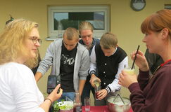 Bei schönstem Herbstwetter konnten beide Schulen ihre Aktivitäten auch im Freien stattfinden lassen. Die Angebotspalette reichte beim Berufskolleg von Wikingerschach über eine Cocktailbar, Nudelsalat und Grillwürstchen bis zu Dosenwerfen und Bogenschießen. Ein buntes Programm von der ganzen Schulgemeinschaft für die ganze Schulgemeinschaft.