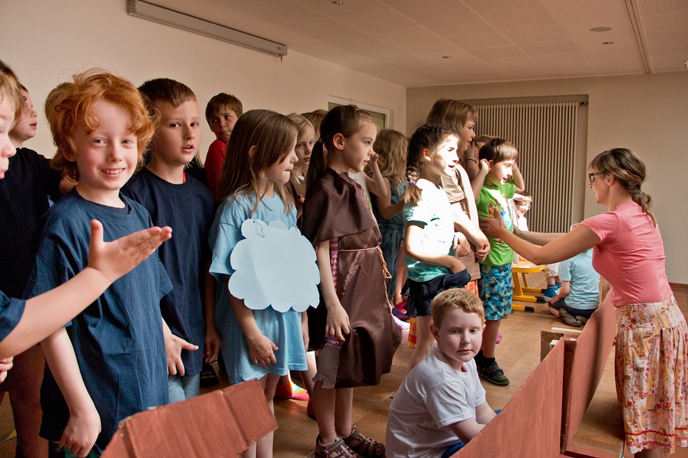Die biblische Geschichte von Noah und der Sintflut wurde vom Komponisten Michael Schmoll für Kinder vertont und erzählt kindgerecht von der Erhaltung der Schöpfung in ihrer Vielfalt und einer hoffnungsvollen Zukunft – für alle. Unser Konzept basiert auf der Verbindung von Musik, Improvisation und szenischer Bewegung; es ermöglicht den Kindern mit verschiedenen Begabungen auf ihre Art am Projekt mitzuwirken, indem sie singen, die Geschichte in bewegten Bildern darstellen oder mit Schlagzeuginstrumenten Tier- und Naturgeräusche erzeugen.