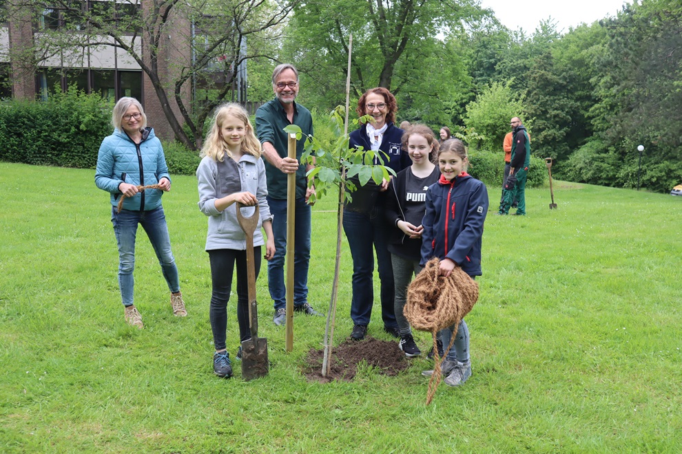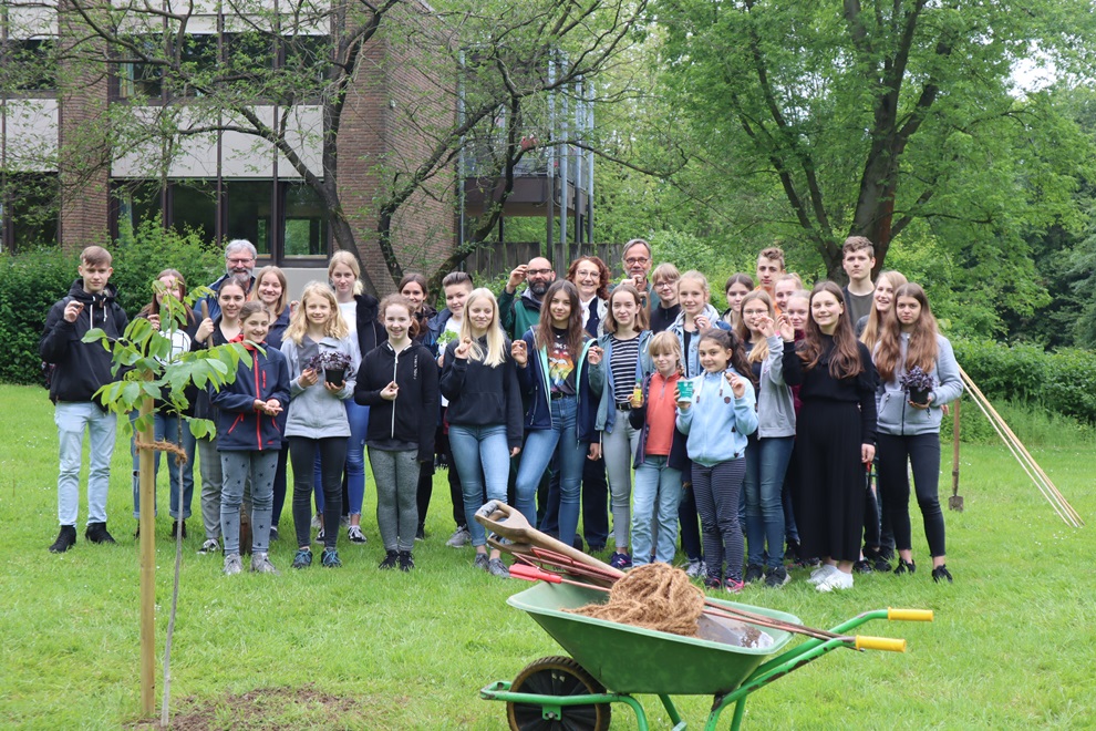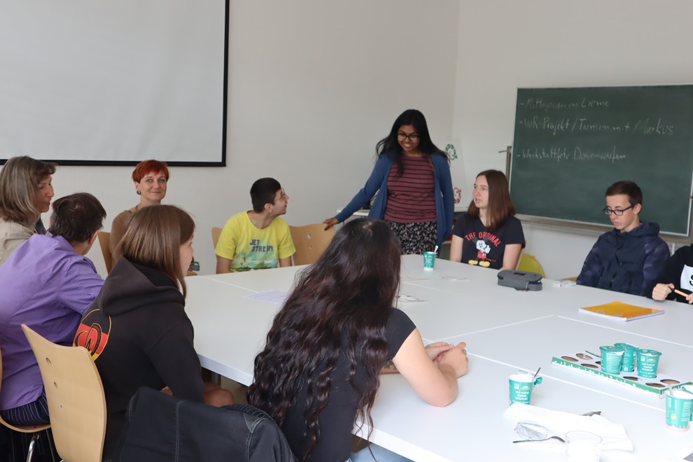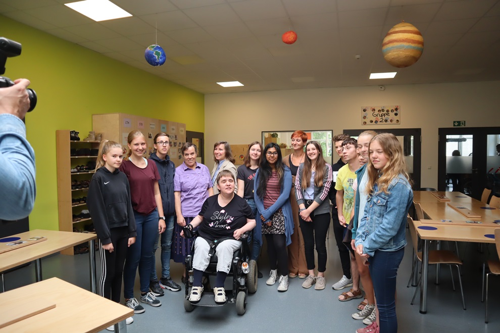 Planeten hängen unter der Decke des Speisebereichs von eeWerk. Schön geworden. Zusammen mit Schüler*innen des Engelbert-Kaempfer-Gymnasiums haben Klient*innen die Planten gebastelt. Vier Tage war die altersgemischte Schüler*innengruppe mit Lehrerin Susanne Meyer-Limberg und Stiftungsmitarbeiterin Nicole Uthoff zu Projekttagen unter der Überschrift „Zeit schenken“ in Eben-Ezer. Ein Geschenk, das sich Klient*innen und Schüler*innen gegenseitig machten. „Wir hatten eine sehr schöne gemeinsame Zeit „, sagte eine Schülerin und eine andere ergänzte: „Man hat sich sofort wohl hier bei ee Werk gefühlt. Es ist eine schöne Atmosphäre mit sehr viel Freundlichkeit“. Am letzten Projekttag zeigte Melanie Lamek den Schüler*innen ihr Zimmer. „Danke, dass ihr da wart, schade, dass heute schon der letzte Tag ist, es war so schön mit euch“, damit verabschiedeten Stefanos und Monika Ochmann die Gruppe. Eine Fortsetzung folgt sicherlich, denn die Kooperationsvereinbarung zwischen EKG und Eben-Ezer beinhaltet bis zu vier gemeinsame Aktionen pro Jahr. Eine fand erst vor kurzem statt: Walnussbäume pflanzen vor dem Haus Sternberg .