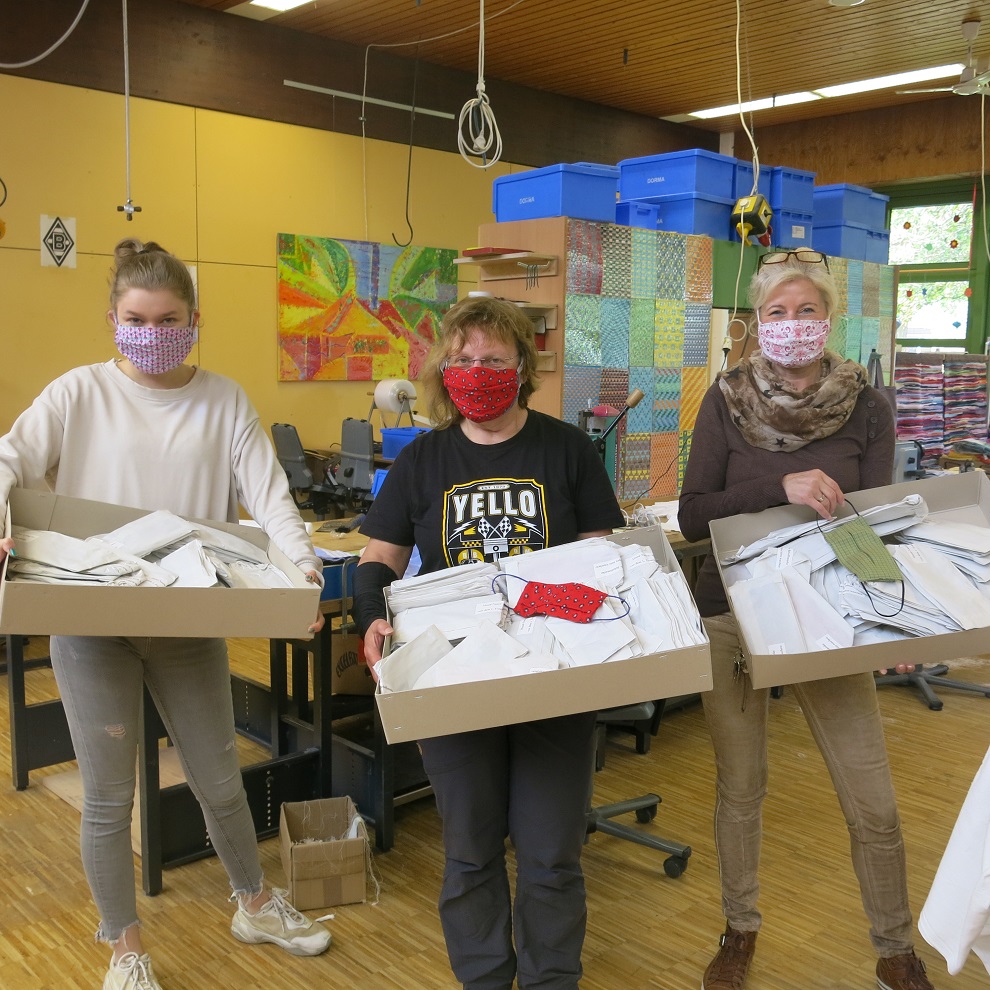 „Mit großer Freude spenden wir unsere selbst genähten Mund-Nasen-Behelfsmasken an Euch und Eure Bewohner“, so stand es in einem Brief, der einer Lieferung von 200 Masken beigefügt war, die in der letzten Woche die Stiftung Eben-Ezer erreichte. „Wir sind völlig begeistert von dieser unerwarteten Unterstützung“, sagt Rosemarie Höfs, Mitarbeiterin bei eeWerk. Hier werden in Eigenregie Masken zugeschnitten und genäht. Auch zahlreiche Spenden konnten die Mitarbeiter*innen hier schon entgegen nehmen, allerdings keine in dieser Größenordnung. Aber wie sind die Bielefelder Werkstätten, von denen die Spende stammt, auf die Idee gekommen ausgerechnet Eben-Ezer mit Masken auszustatten, wo doch Bethel vor der Haustür liegt? „Wir haben im Team überlegt, wen wir unterstützen können. Da meinte eine Kollegin, dass es doch in Lemgo auch so eine Einrichtung gibt, die sich um Menschen mit Behinderungen kümmert“, berichtet die Betriebsratsvorsitzende Kerstin Holz. Es folgte eine kurze Recherche im Internet, und dann war die Sache klar: Eben-Ezer sollte die hochwertigen, aus vielen verschiedenen Stoffen geschneiderten Masken erhalten. Bewohner*innen und Mitarbeiter*innen von Eben-Ezer sagen: Herzlichen Dank für diese unverhoffte Spende!