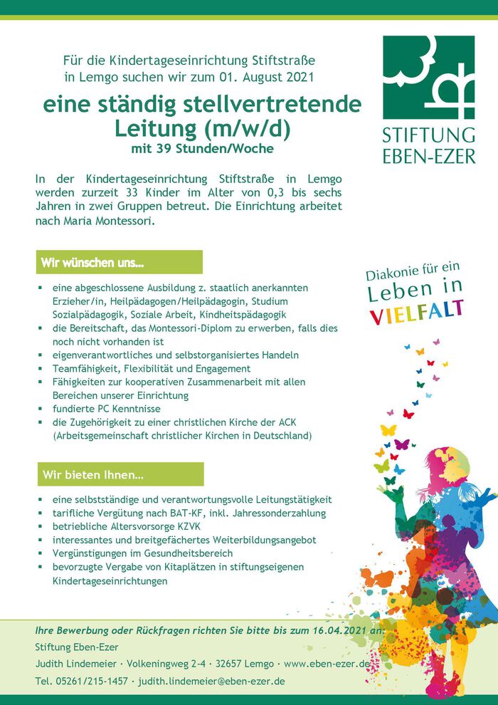 stellv. Leitung (m/w/d) Kita Stiftstraße
