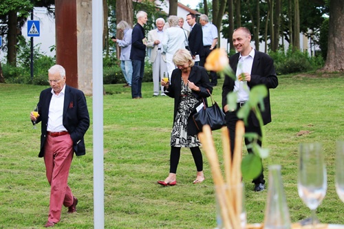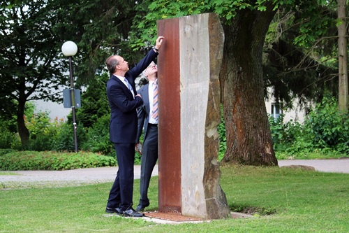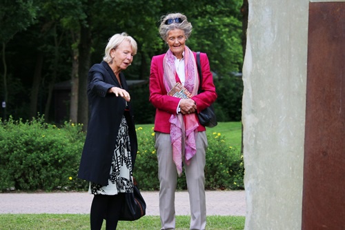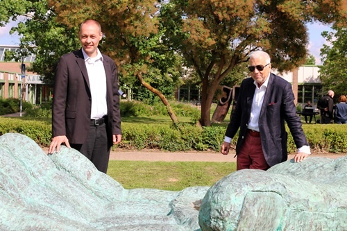 Ein kleiner Vernissage-Besucher hatte die einladende Hand zu genau diesem Zweck unter die Füße und in ihr Platz genommen. Der Theologische Vorstand Pastor Dr. Bartolt Haase dankte Herrn Teutloff und seiner Frau Hannelore für die großzügige Schenkung und erinnerte an die Entstehungsgeschichte in der Dienstzeit seiner Vorgängers Pastor Hermann Adam. Ein Nachbar des Kunstsammlers hatte Beziehungen zu Eben-Ezer und stellte den Kontakt her. Seitdem war man in regelmäßigem Austausch. Im vergangenen Jahr hatte Teutloff der Stiftung eine Gemäldesammlung vermacht und die Idee, seinem Skulpturenpark in Lemgo auf dem Stiftungsgelände eine neue Heimat zu geben, reifte heran. "Das ging ganz leicht", betonte Lutz Teutloff: "Die Standorte waren schnell gefunden, das Gelände ist ideal geeignet." Bis die mehrere Tonnen schweren Skulpturen dann an ihrem Platz aufgestellt werden konnten, waren einiger logistischer Aufwand und ein Schwertransporter nötig. Auch Fundamente und Sicherungen mussten angefertigt werden. Den Diebstahlschutz tragen die Skulpturen aufgrund ihres Gewichts selbst in sich.