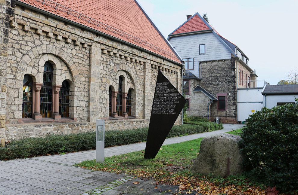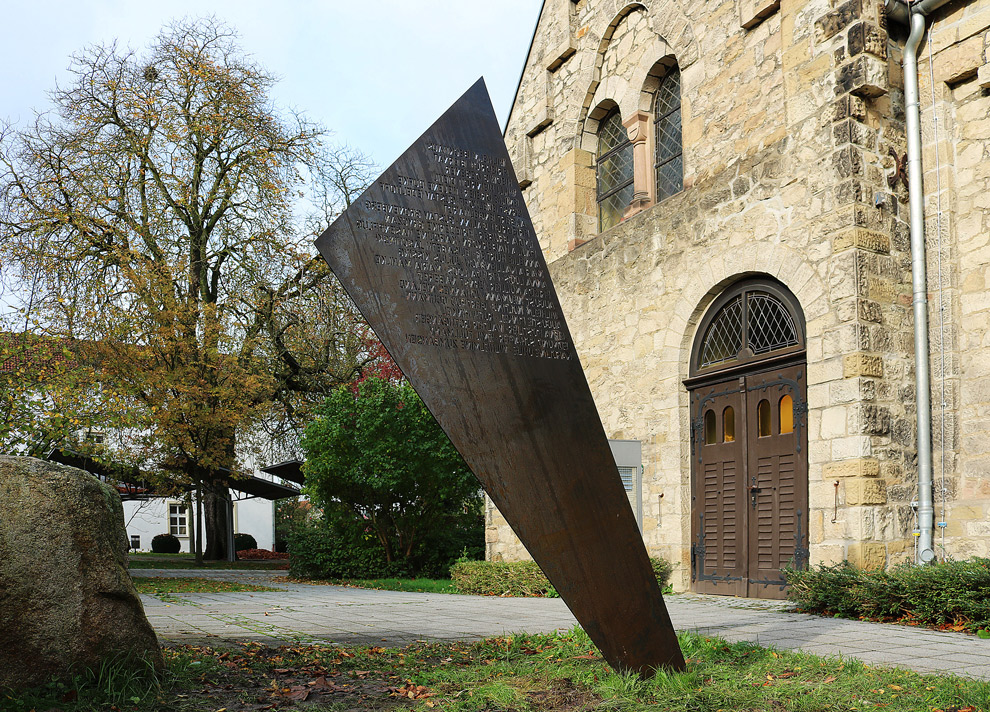 Das Mahnmal ist aus Stahl gefertigt. Er steht für die gnadenlose Härte, die diesen Menschen widerfahren ist. Er verweist auch auf die Eisenbahnschienen, über die die Deportationen von Warstein aus erfolgten. Gleichzeitig rostet der Stahl. Seine Oberfläche strahlt und glänzt nicht, sondern sie ist gebrochen wie die Biografien der Menschen, derer wir heute gedenken.